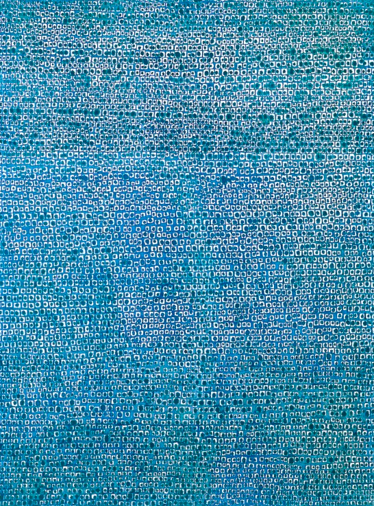 Gracias a una beca otorgada por Rockefeller, en 1963, Kim y su esposa prefirieron mudarse a Nueva York que tener una vida asegurada en Corea como profesores de universidad. En esta ciudad rica en arte y cultura, conoció y se inspiró de las obras de artistas como Mark Rothko y en Barnett Newman, y compartiría ideas con otros expatriados coreanos que participaban en el movimiento Fluxus. Entre estos nuevos estímulos plásticos, y la nostalgia que le provocaban los paisajes invernales neoyorquinos, Kim empezó a crear grandes lienzos monocromáticos cubiertos de pequeños puntos que asemejan mosaicos. Cada punto, cada línea, cada color azul, al final, representaban las montañas, los árboles, los mares y las estrellas, y la posibilidad de regresar, aunque sea durante unos cuantos segundos, a su tierra. Es aquí que crearía una de sus obras más importantes: Universo.