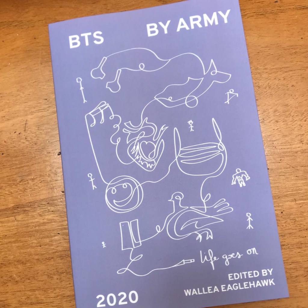 Hoy estoy de presumida. Por razones del destino, tuve la increíble oportunidad de ilustrar un libro y por fin lo tengo en mis manos. El proyecto proviene de una editorial independiente que se dedica a la publicación de textos revolucionarios sobre la justicia, la no violencia y BTS, y el libro en el que participe es precisamente sobre esta banda coreana. Para los fans y para los detractores, sepan que el trabajo que hizo todo el equipo que participó fue exhaustivo, serio y profesional para que alguien que no conozca de este fenómeno social y mercadotécnico lo pueda entender mejor, y para que ARMY pueda celebrar el octavo aniversario del grupo. Mis garabatos aparecen en la portada y al inicio de cada capítulo. Agradezco a Pamela Gutiérrez y a Wallea Eaglehawk por esta hermosa oportunidad. Si les interesa pueden meterse al sitio de la editorial Revolutionaries y comprarlo en físico o digital.