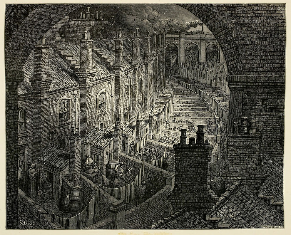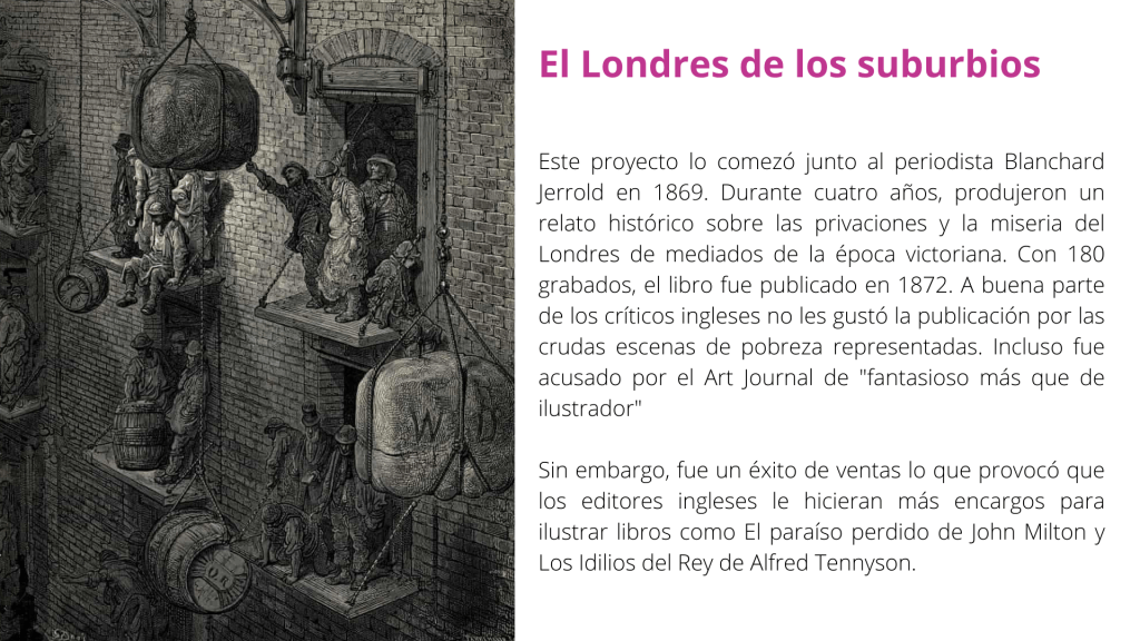 En 1869, Blanchard Jerrold le propuso a Doré hacer un proyecto que retratara un Londres basado en The Microcosm of London (1808), obra de Rudolph Ackermann, William Pyne y Thomas Rowlandson. Doré firmó un contrato de cinco años con la editorial Grant & Co. por 10 mil libras (160 mil dólares actuales) con la condición de vivir al menos tres meses al año en Londres por un año.