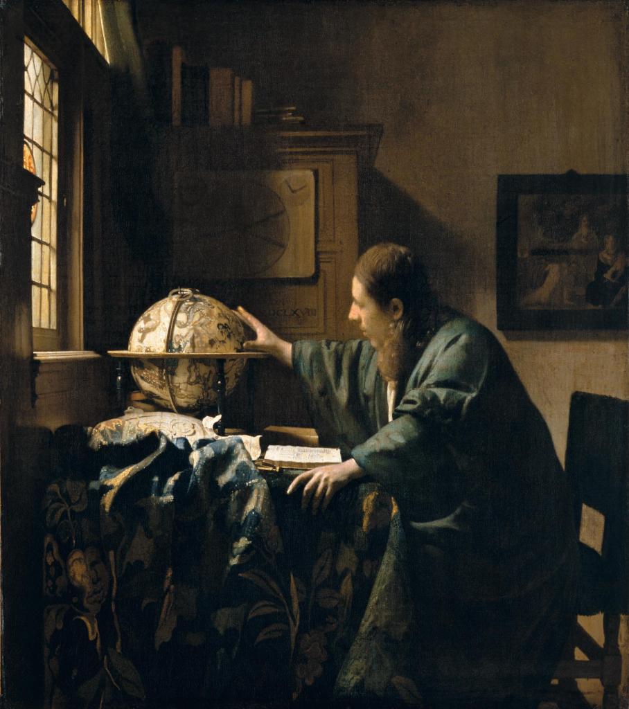 Johannes Vermeer (1632-1675) nació en Delft, Países Bajos, en la Edad de Oro neerlandesa, periodo de gran desarrollo político, económico y cultural. Existe poca información de su vida; siendo protestante se casó con una mujer católica de nombre Catharina Bolnes con la que tuvo 15 hijos, de los que cuatro murieron antes de ser bautizados. Debido a la guerra franco-neerlandesa (1672-1678), el matrimonio entró en crisis porque nadie compraba los cuadros del artista. Vermeer enfermó súbitamente muriendo a los pocos días. Las deudas de la familia eran tan grandes que su esposa tuvo que renunciar a su herencia familiar para poder pagar a los prestamistas.