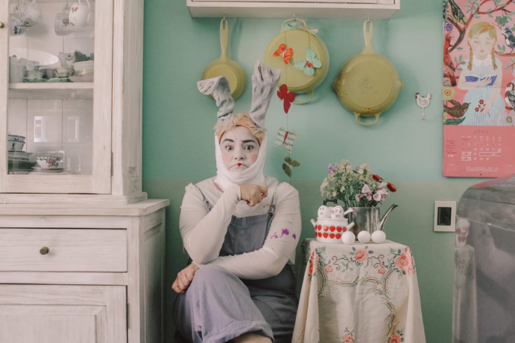Aparte de las relaciones intrapersonales, otro de los puntos cohesivos de su arte es su estética. Visualmente, cada idea que compone en su cabeza crea mundos encantadores de distintos colores y texturas: el de las flores, el de los tules, el de los estambres… Son parajes refrescantes que contrastan con el escenario de ciudad, muchas veces triste y gris por el tedio y el estrés en el que se vive. Sus vestuarios los confecciona su hermana, y son la cereza en el pastel que armoniza un toque nostálgico, de piezas antiguas, con materiales sintéticos de la actualidad. La suma total crea que quien lo vea, se remonte a momentos felices de la tierna infancia, sonría, ría, y encienda la llama de la creatividad y la conciencia colectiva.