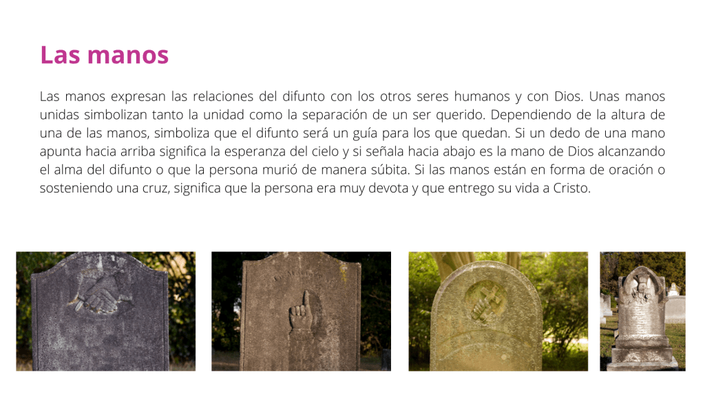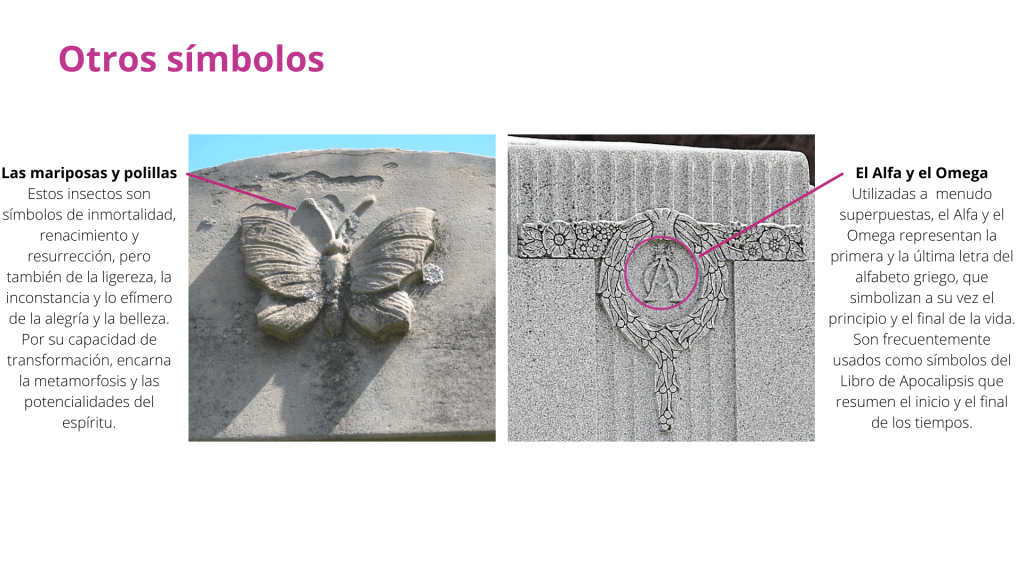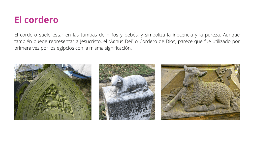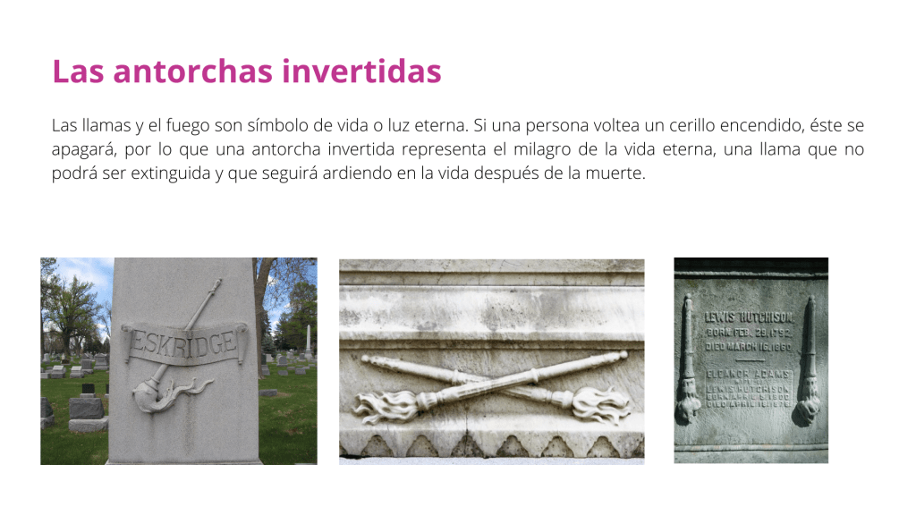 Antes de que las lápidas fueran minimalistas, muchas de éstas eran labradas con símbolos que segurizaban a las personas que sus parientes finados pasaban a una vida mejor. A continuación se presentarán algunos de los más concurridos: