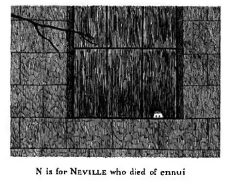 Edward Gorey fue un excéntrico a los ojos del común denominador. Después de vivir en Nueva York como ilustrador editorial, se mudó a Cape Cod, Massachusetts, a una casa del siglo XIX en un estado decadente, con una familia de mapaches en el sótano, una vaina de hiedra venenosa creciendo en un fisura de su sala, más de 21 mil libros acomodados alrededor de la casa, una cabeza de momia guardada en el clóset, una colección de postales de bebés victorianos muertos, y muchos gatos como co-inquilinos. Pero en el fondo era un hombre sencillo y sensible que encontraba la magia y el asombro a su alrededor con los ojos de un niño en el cuerpo de un hombre barbudo. Ejemplo de esto fue cuando, en una entrevista para el New Yorker, le dijo al reportero que tuvo un gran trauma en esa semana perdiendo su piedra favorita; pensaba que se iba a morir, pero al final la encontró.