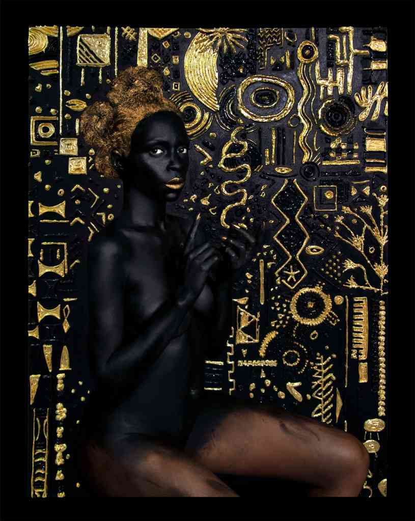 Creando narrativas sobre historia, raza y género, las obras de Viktor fusionan el arte contemporáneo con el arte antiguo. Muchas de sus obras incorporan los patrones del arte africano con hojas de oro de 24 quilates. Esta combinación recuerda precisamente a las mujeres mitológicas de Klimt, pero desde una perspectiva más moderna y más femenina. El oro es un material precioso que siempre ha sido tratado con respeto por su significado religioso y místico. Esta artista juega como una alquimista con él para contrastar con los fondos negros de sus modelos –que simbolizan al continente africano, a la tierra y al espacio–, como estrellas decorando la noche.