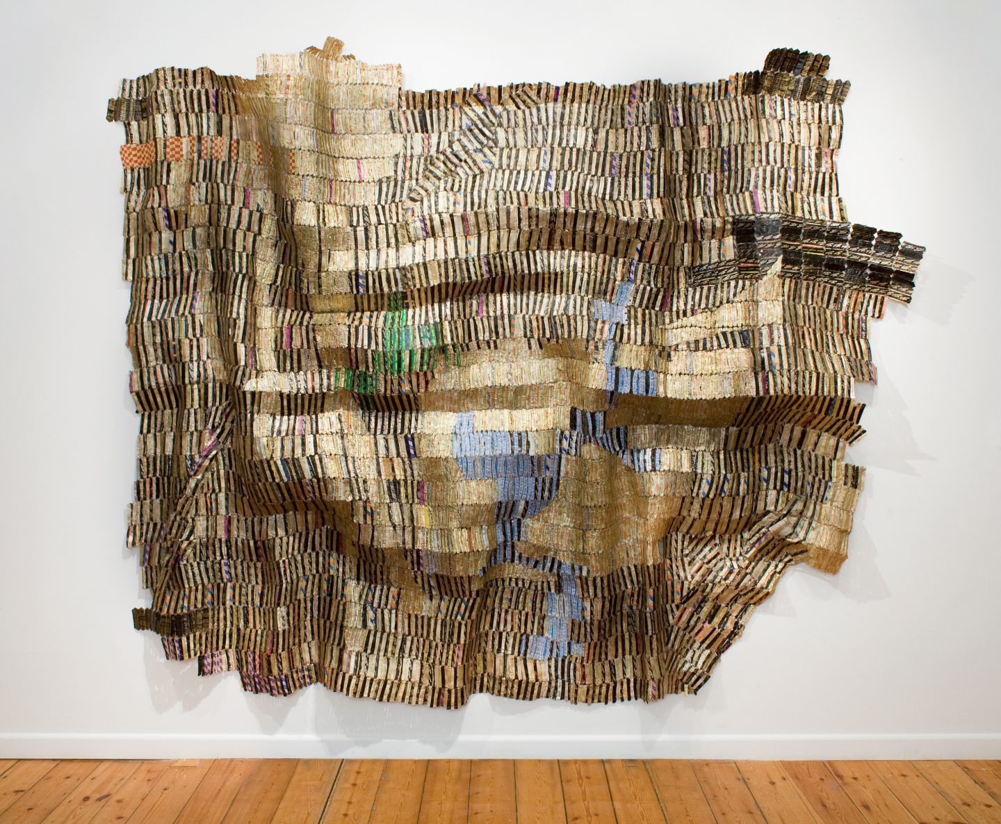Semejantes a un tejido hecho de un telar tradicional llamado kente, estos mantos de grandes proporciones son flexibles y maniobrables con cada interacción, lo que permite que los curadores que montan la pieza sean parte integral del arte creado por Anatsui. El tejido, siempre en movimiento, quiere subrayar la fluidez que se encuentra detrás de los conceptos de consumismo, transformación, medio ambiente dentro de África.
