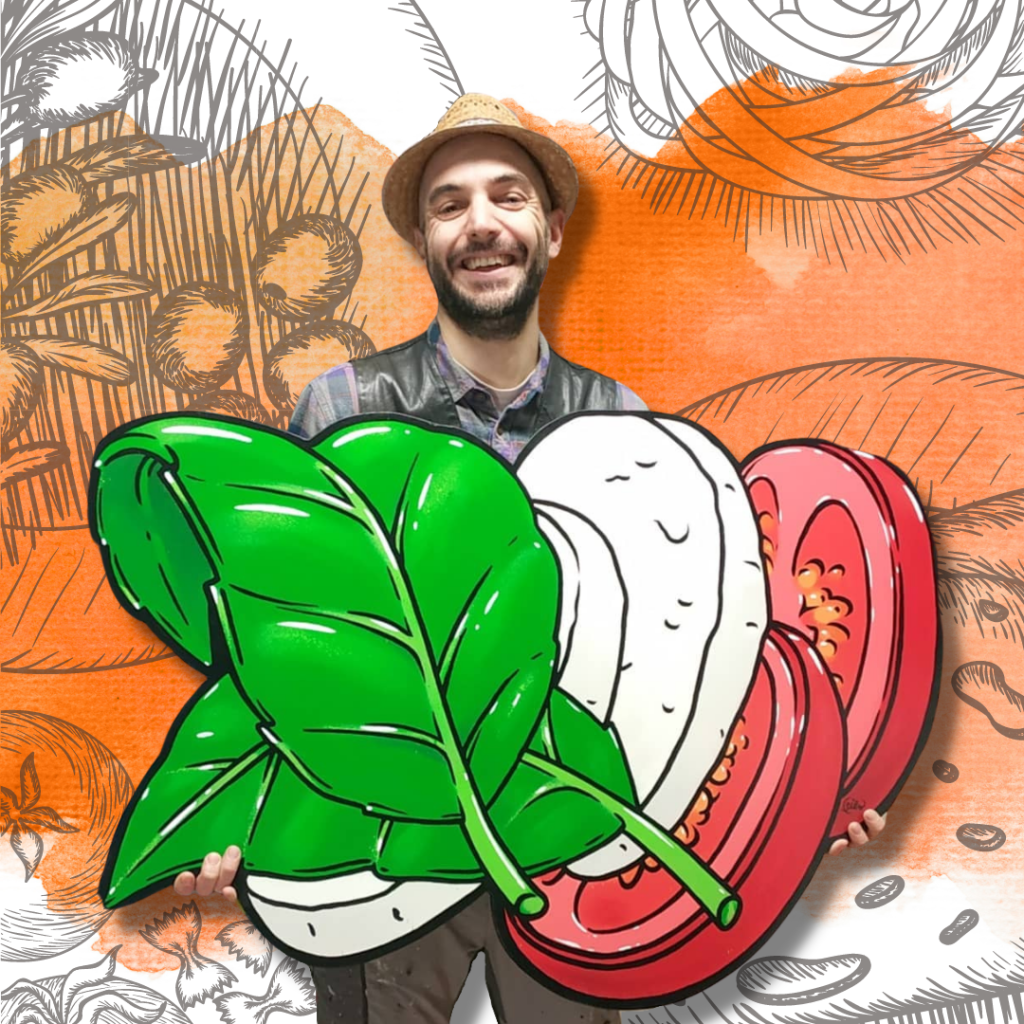Con un sombrero de paja y un collar de salchichas de tela, va esparciendo amor y unidad a través del color y la comida. ¿Quién puede enojarse con una pizza margarita o con un queso mozzarella? Realmente gente sin corazón. Pero, si vuelven a rayar encima de la comida, no hay nada que salsa, albahaca o un pastel más grande no puedan cubrir.