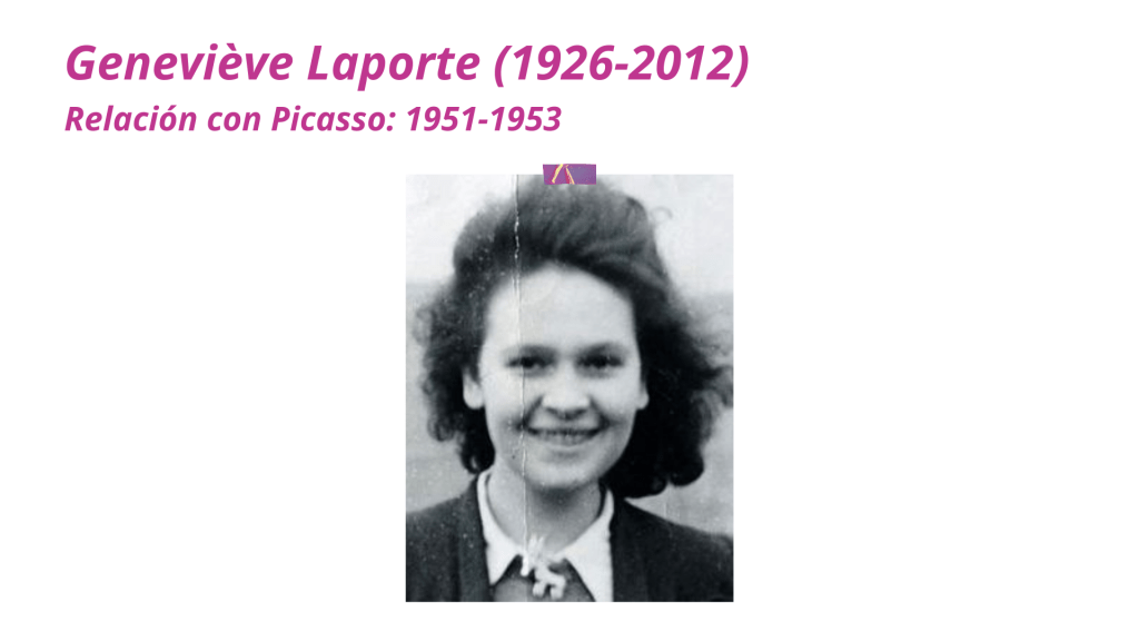 Laporte conoció a Picasso cuando tenía 17 años: lo entrevistó para el periódico de su escuela y desarrollaron una amistad platónica basada en el arte. Tiempo después, cuando ella tenía 24, se reencontraron y tuvieron un breve romance. Viajaron a Saint-Tropez en verano y el malagueño no dejó de retratarla. Cuando Françoise Gilot lo dejó, éste invitó a Laporte a vivir con él. Ella se negó, primero por principio –¿su mujer lo deja y para no estar solo ahora quiere vivir con ella?– y segundo, porque varios amigos en común, entre ellos Paul Éluard —que salvó a Dora Maar del hospital psiquiátrico—, le había advertido que todo lo que tocaba Picasso lo mataba. Fue la musa más retratada del cubista con 282 obras; le siguen Dora Maar, Marie-Thérès Walter y Françoise Gilot.