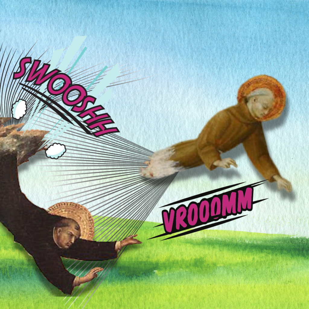 Para inspirar a la gente a vivir una vida libre de pecado, se contaban y retrataban biografías de santos, hombres y mujeres comunes que eligieron una vida en alabanza de Cristo, y que por lo mismo podían realizar milagros para ayudar a los necesitados. Y vaya que eran milagrosos ya que muchos podían curar al enfermo, expedir demonios, hablar con animales y volar por los cielos… Como los superhéroes de Marvel o DC, pero en vez de trajes de neopreno y licra, con humildes hábitos y sandalias.