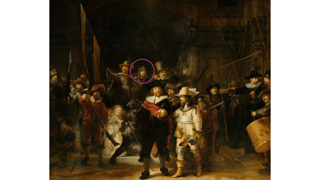 Como un extra, Rembrandt fue un hombre adelantado a su tiempo y también se retrató photobombing varias escenas. El photobomb es aparecer en un recuadro aunque no se pertenezca propiamente al entorno; mucha gente en la actualidad lo hace para arruinar una fotografía, pero él lo hacía para darle validez de facto a sus obras y romper la cuarta pared para hacer al espectador parte de la obra.