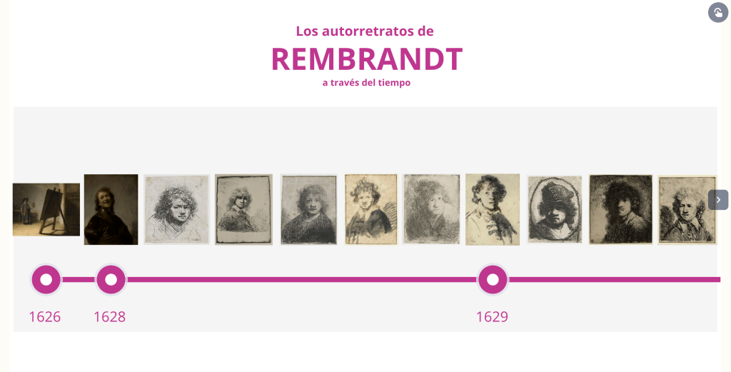 A continuación, se muestra una línea del tiempo con sus retratos, grabados y dibujos, para apreciar su crecimiento como ser humano y artista: