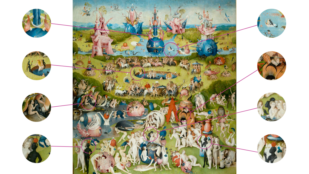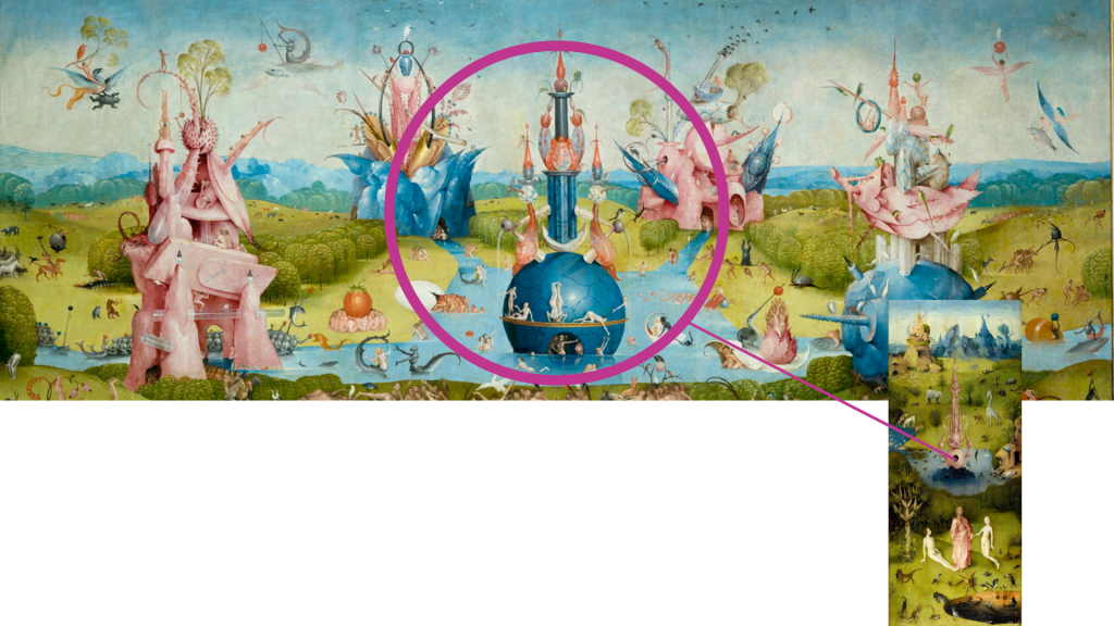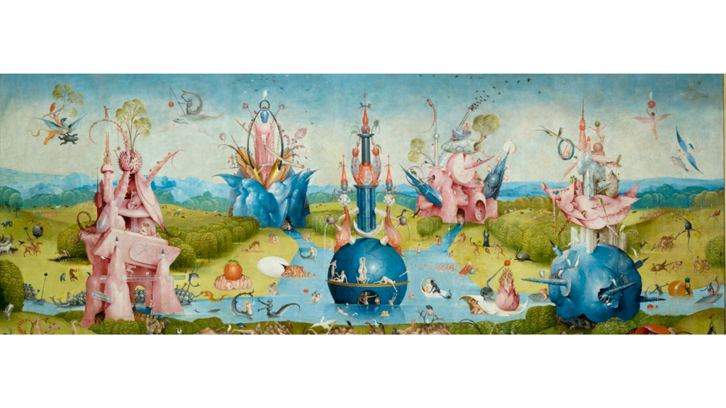 Después de haber hablado de la estructura y composición general, del tríptico cerrado y del panel izquierdo, La Presentación de Eva, en esta ocasión se analizará el panel central de El Jardín de las Delicias.