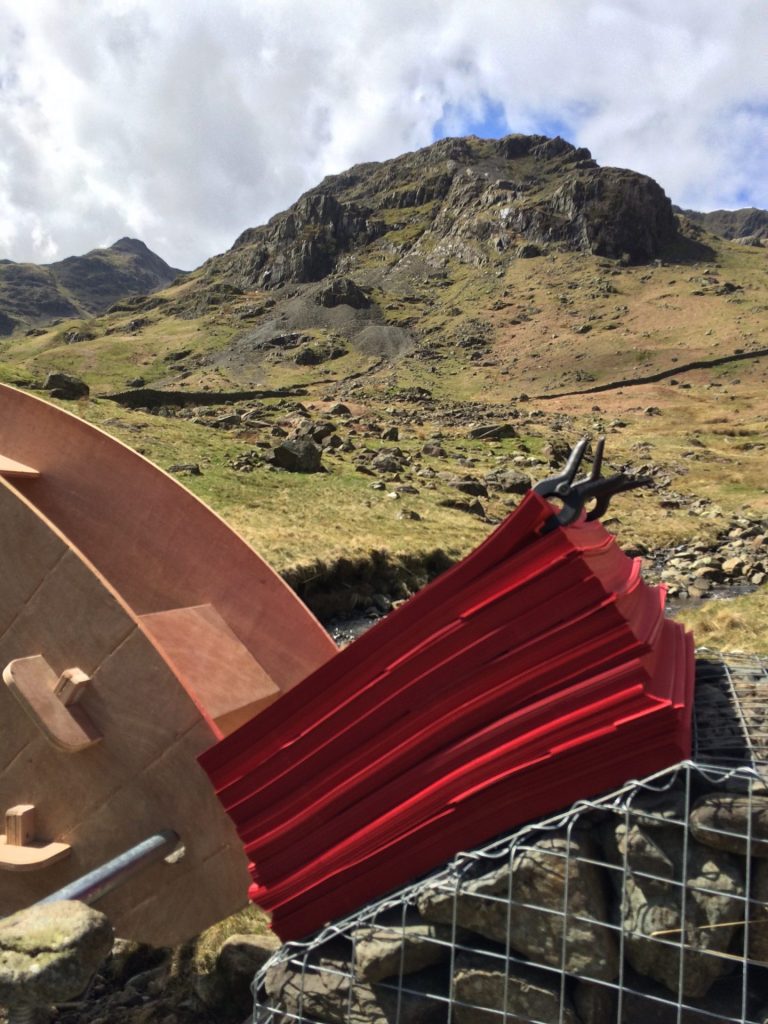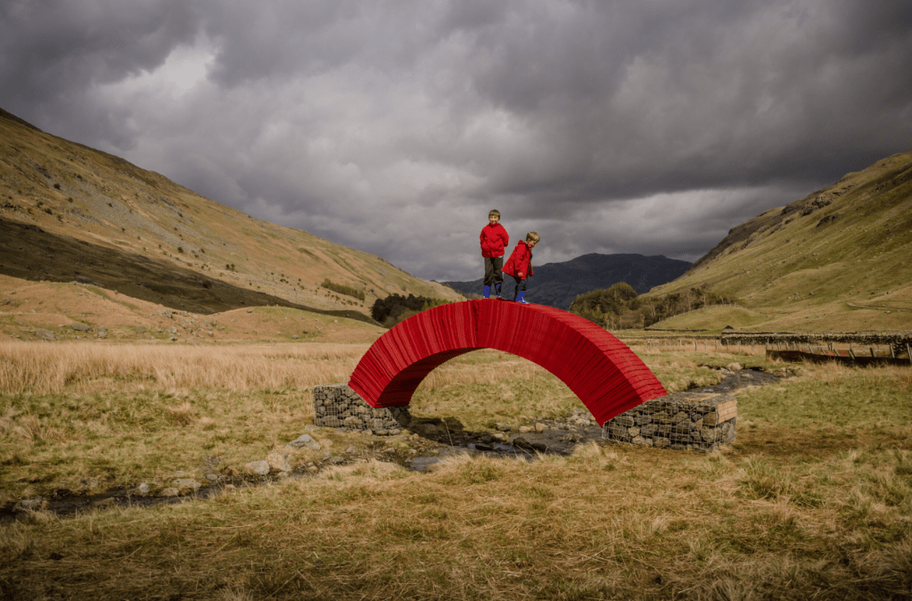 PaperBridge (2015) tardó tres años en concretarse. ¿Por qué? Porque no es fácil construir un puente enteramente de papel sin usar pegamento, pernos u otras fijaciones. Haciendo hincapié en las tradiciones arquitectónicas originales del Distrito de los Lagos, Messam crea un arco de medio punto apilando folio tras folio. El papel fue fabricado especialmente por James Cropper en Burneside Mill, Cumbria, siendo el único fabricante papelero que cumplía con los estándares ambientales que requería la pieza. De rojo brillante, el puente es adoptado por los senderos y montañas, siendo un pequeño contraste estético dentro de la naturaleza.