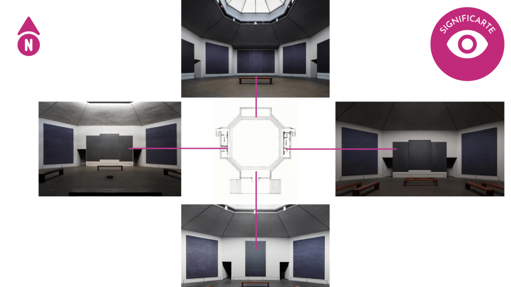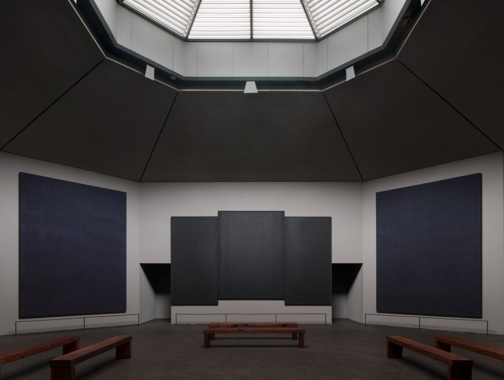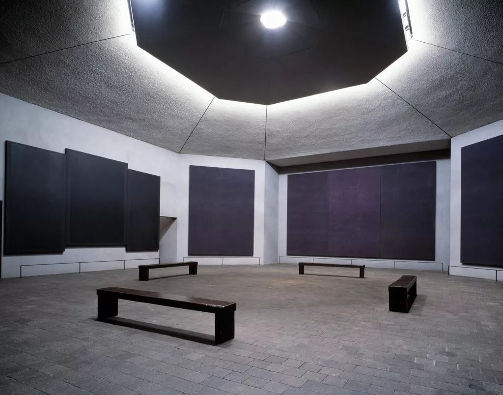 Cuando en 1965, el matrimonio de Ménil le propuso crear varios murales de gran formato que se dispondrían en una capilla que pretendían construir en Houston, el artista quedó encantado. Para este encargo, se decantó pro los colores oscuros, incluso la monocromía. Creó en total 14 piezas: 3 trípticos y 5 lienzos independientes. Con obras negras, marrones, optó por trabajar con colores oscuros. Asimismo, el proyecto lo tenía tan emocionado que pidió permiso para también trabajar en la parte arquitectónica del edificio.
