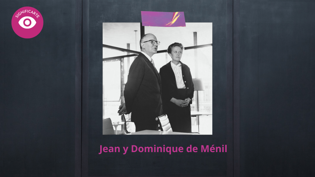 En 1930, de Ménil conoció a una joven físico-matemática que trabajaba en la industria del cine, llamada Dominique Schlumberger (1908-1997). Ella, heredera de una empresa de servicios petroleros, pertenecía a una familia alsaciana calvinista, pero al conocer a su futuro esposo, decidió convertirse al catolicismo, religión y filosofía con la que encaminarían su vida profesional y filantrópica. Debido a la Segunda Guerra Mundial, el matrimonio decide huir de la invasión nazi a Francia y establecerse en Houston, Texas, donde los Schlumberger tenían unas oficinas para administrar los tratos entre Europa, Medio Oriente y Latinoamérica.