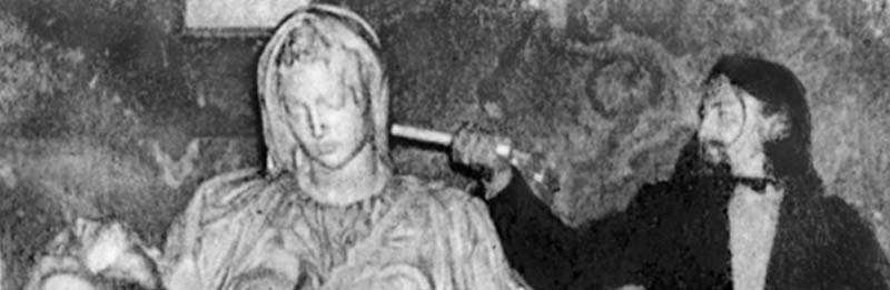 La Pietà de Miguel Ángel Buonarroti (1475-1564) es una maravilla renacentista en mármol que representa a la Virgen María sosteniendo a su hijo muerto cuando lo bajan de la cruz. En el día de Pentecostés del 21 de mayo de 1972, un geólogo australiano de origen húngaro, Laszlo Toth, atacó la obra con un martillo mientras gritaba: “¡Soy Jesucristo, resucitado de entre los muertos!”. Toth golpeó la escultura 15 veces, rompiéndole el brazo a María en el codo, así como parte de su nariz y párpado. No era la primera vez que Toth buscaba hacer alarde de su condición: el año anterior, incluso había escrito al Papa para exigir que se le reconociera como el Mesías. Juzgado como demente, el geólogo fue internado en un hospital psiquiátrico en Italia durante dos años antes de ser deportado a Australia. Desde entonces la escultura se encuentra protegida detrás de un vidrio antibalas.
