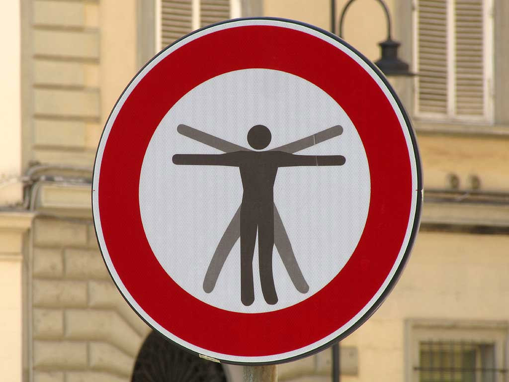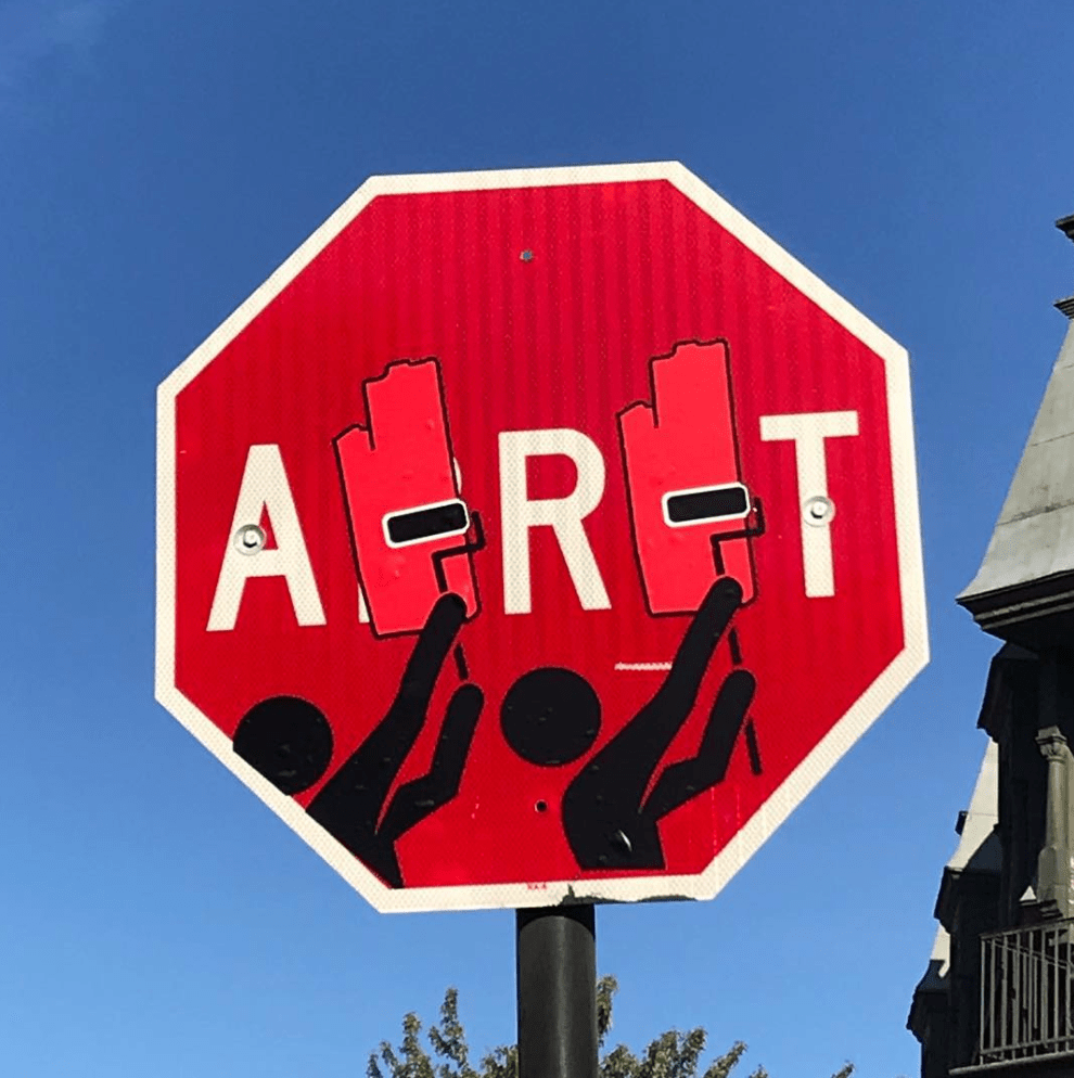 Las señales de tránsito que normalmente sirven para mejorar la urbanidad de una ciudad muchas veces son sobreutilizadas y puestas de manera innecesaria, lo que las hace invisibles en la rutina diaria de las personas. Abraham decidió entonces usar vinilos autoadheribles para modificar estos señalamientos mientras interroga a la gente que los ve: ¿qué tan intransigentes son las leyes? En una sociedad, las normas son necesarias para el orden, pero al mismo tiempo son instrumentos que se deben ir modificando según el cambio de los tiempos.