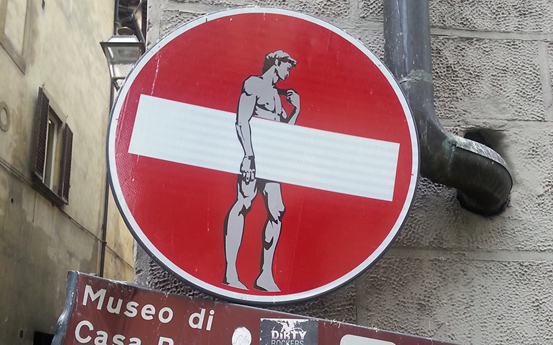 Viajando de ciudad en ciudad, este artista juega con estos letreros y muchas veces tiene que pagar multas de hasta €400.00 por su street art. En Florencia, donde reside actualmente, juega con elementos de la cultura local como pinochos y guiños a la historia artística de la ciudad. En mensajes con un tenor más crítico, ha creado imágenes que critican el asesinato de George Floyd, la crisis de migrantes en Europa, el Brexit y la invasión de Rusia a Ucrania.