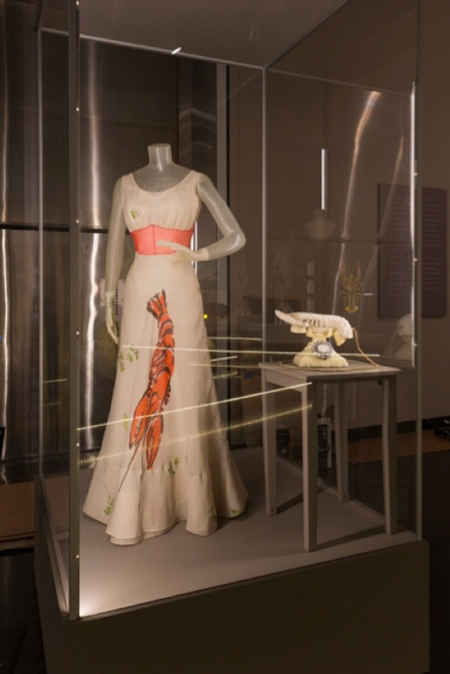 De todas las colaboraciones que tuvieron Schiaparelli y Dalí, o Dalí y Schiaparelli, las más famosas fueron el vestido langosta y el sombrero zapato. El motivo de la langosta, símbolo de lujo y opulencia, empezó a aparecer en los cuadros del artista catalán en 1934. Tres años más tarde la diseñadora italiana creó un vestido en el que se podía ver el dibujo de una enorme langosta junto a unas ramas de perejil. Dicho vestido se hizo mundialmente famoso gracias a las fotografías que Cecil Beaton realizó a la socialité Wallis Simpson con motivo de su futuro matrimonio con Eduardo VIII de Inglaterra.