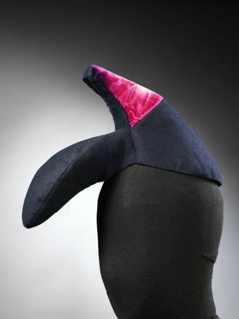 También de 1937, el sombrero zapato causó furor. Su preconcepción fue una foto que Gala le tomó a Dalí con una zapatilla en la cabeza. Con sólo tres ejemplares, este aditamento fue el culmen de la moda surrealista: para unos, era el mundo de cabeza, para otros, el epítome de un fetichismo a los pies. Sea como fuere, esta colaboración rompió las fronteras entre la moda y el arte, permitiéndole a dos artistas crear piezas únicas que buscan develar los secretos del subconsciente mientras gozaban la vida con sentido del humor.