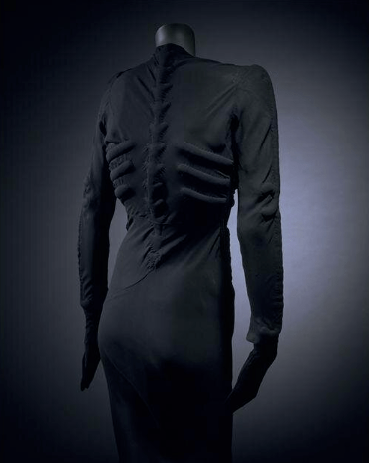 El vestido esqueleto fue una de las piezas más destacadas de la colección. Éste fue esbozado por Dalí, tenía los huesos de las piernas unidos a los de la pelvis por medio de un elegante gancho, como los que se usan en joyería. Era largo y ajustado, y estaba realizado en crepé de color negro con formas acolchadas del esqueleto humano.