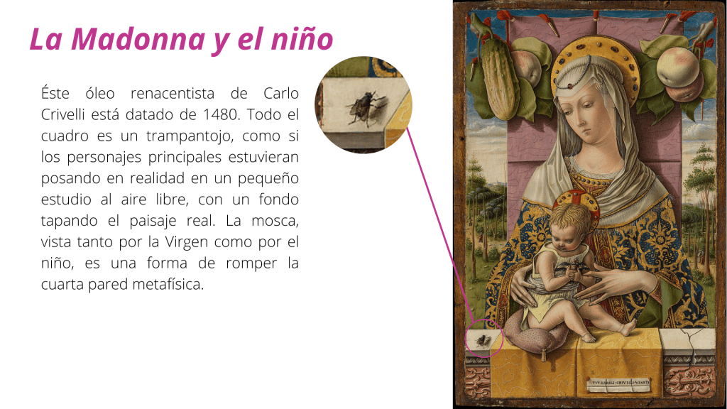 A continuación, se muestran algunos ejemplos de musca depicta o moscas retratadas en diferentes pinturas: