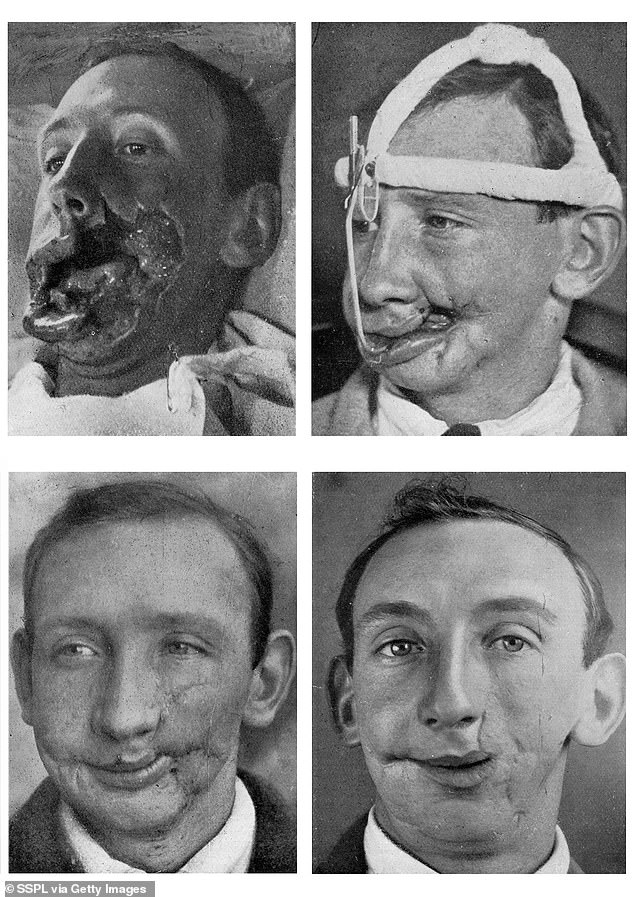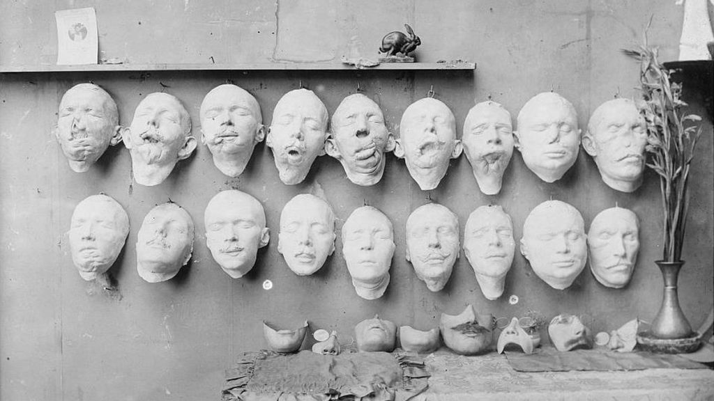 De los heridos, el 16% tenía lesiones faciales graves que dificultaban ver, respirar con facilidad o comer y beber. Históricamente, la medicina de reconstrucción facial no estaba para nada desarrollada. Harold Gillies, un cirujano otorrinolaringólogo de Nueva Zelanda, al estar trabajando en los hospitales del frente occidental, se dio cuenta que para reparar estos estragos se necesitaba trabajo especializado. Con permiso del gobierno británico, consiguió abrir la primera unidad de cirugía plástica de Gran Bretaña en el Hospital Militar de Cambridge en Aldershot para ayudar a todas esas personas que necesitaban una reconstrucción facial. Pero a pesar de estos grandes avances, faltaba intervenciones extra que no eran quirúrgicas.
