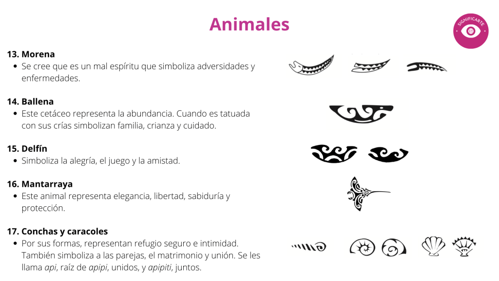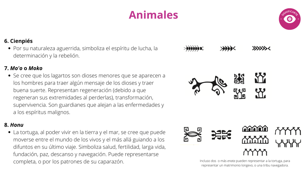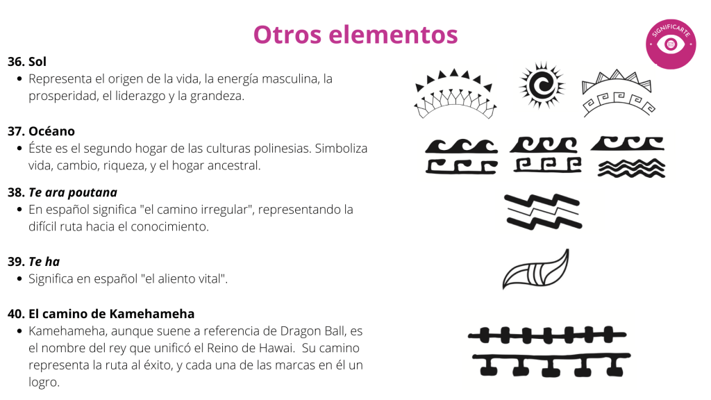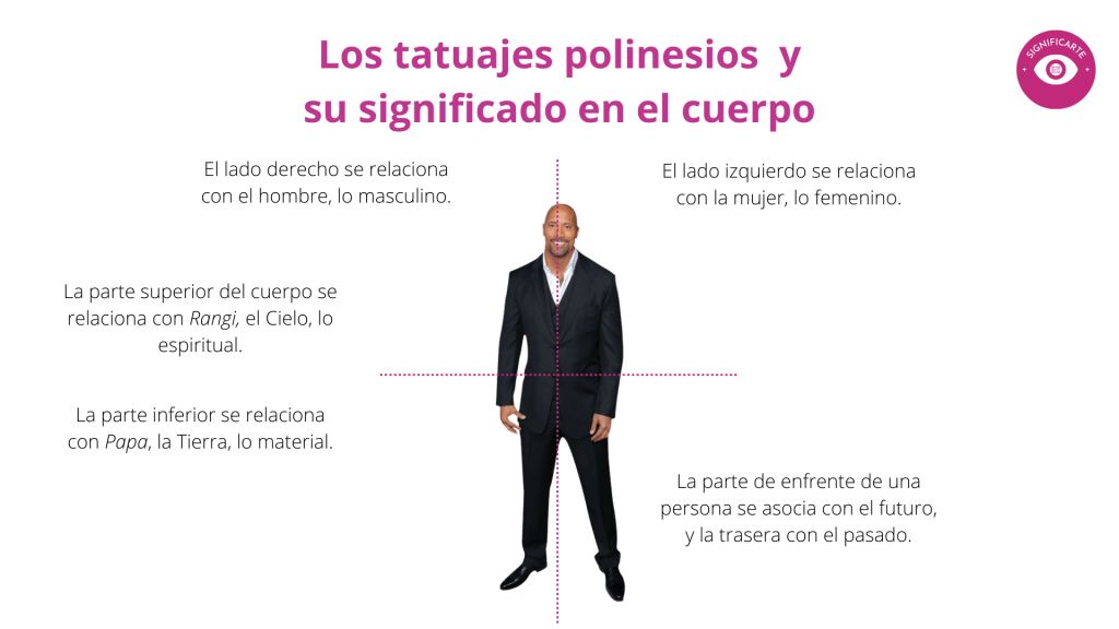Este tipo de tatuajes manifiesta la cosmogonía polinesia. Los seres humanos son hijos de Rangi, el Cielo, y Papa, la Tierra, que en un pasado eran uno mismo. Las personas para trascender deben recuperar esta unión y equilibrio a través de sus tatuajes. Es por esto que la colocación de la tinta debe seguir ciertos principios.