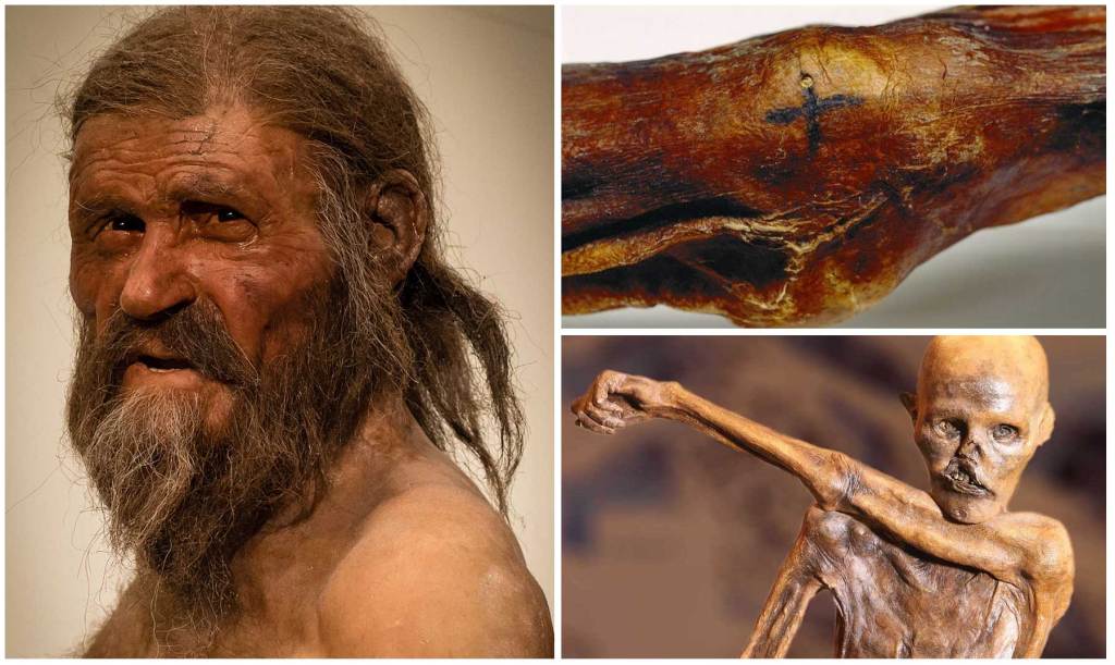 Asimismo, el famoso Ötzi, la momia neolítica encontrada en los Alpes de Ötzta, en 1991, tiene también varios tatuajes. Con una edad calculada de 5,200 años, el cadáver que se dice maldito por las extrañas muertes que hubo de sus descubridores y estudiosos, tiene 77 tatuajes en su cuerpo: 68 en la muñeca, 2 en la zona lumbar de la espalda, 5 en la pierna derecha y 2 en la izquierda.